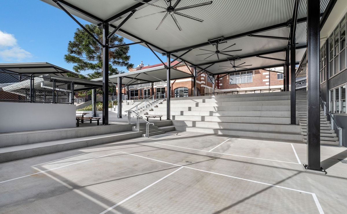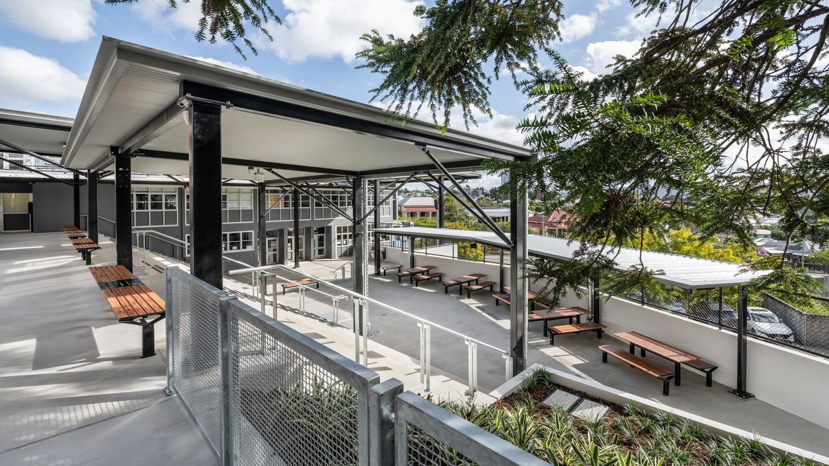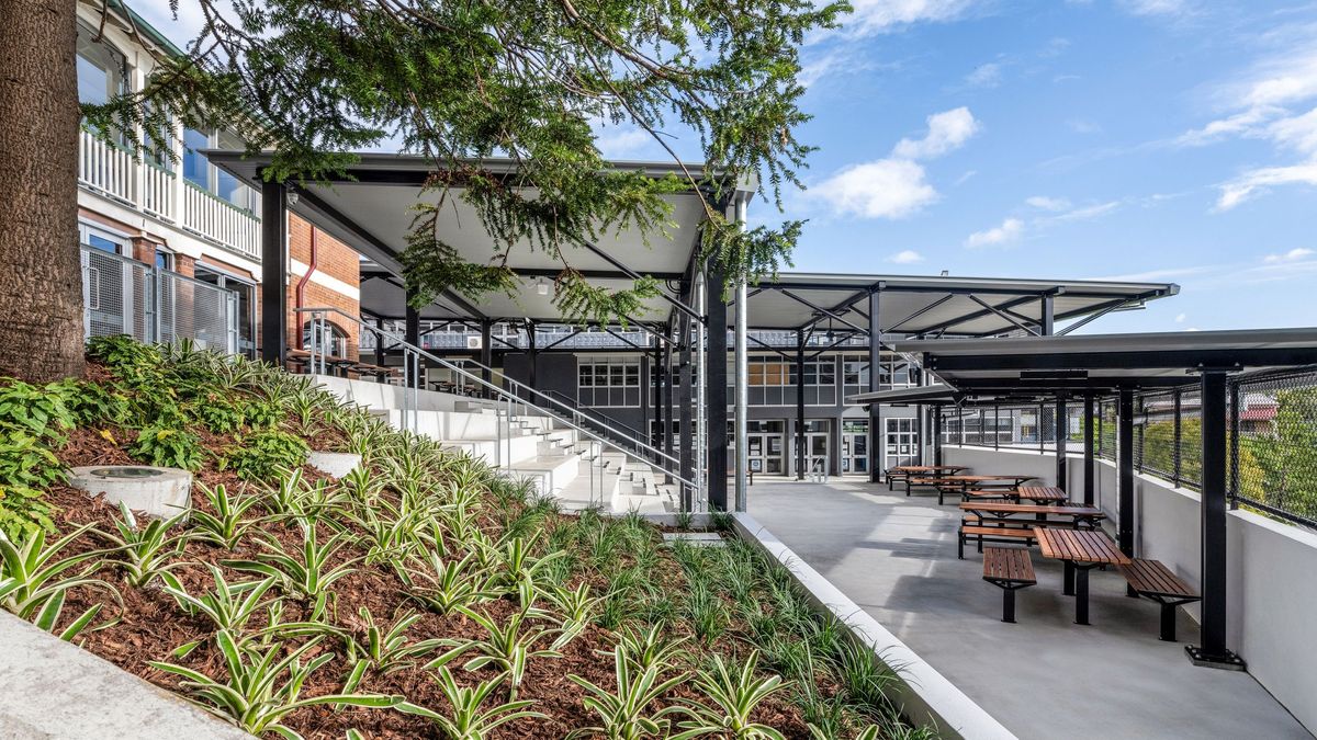 The Westcourt area at Lauries plays host to seating, play areas, gardens and shade coverings and is located west of the Brother Hogan Building (Primary building).