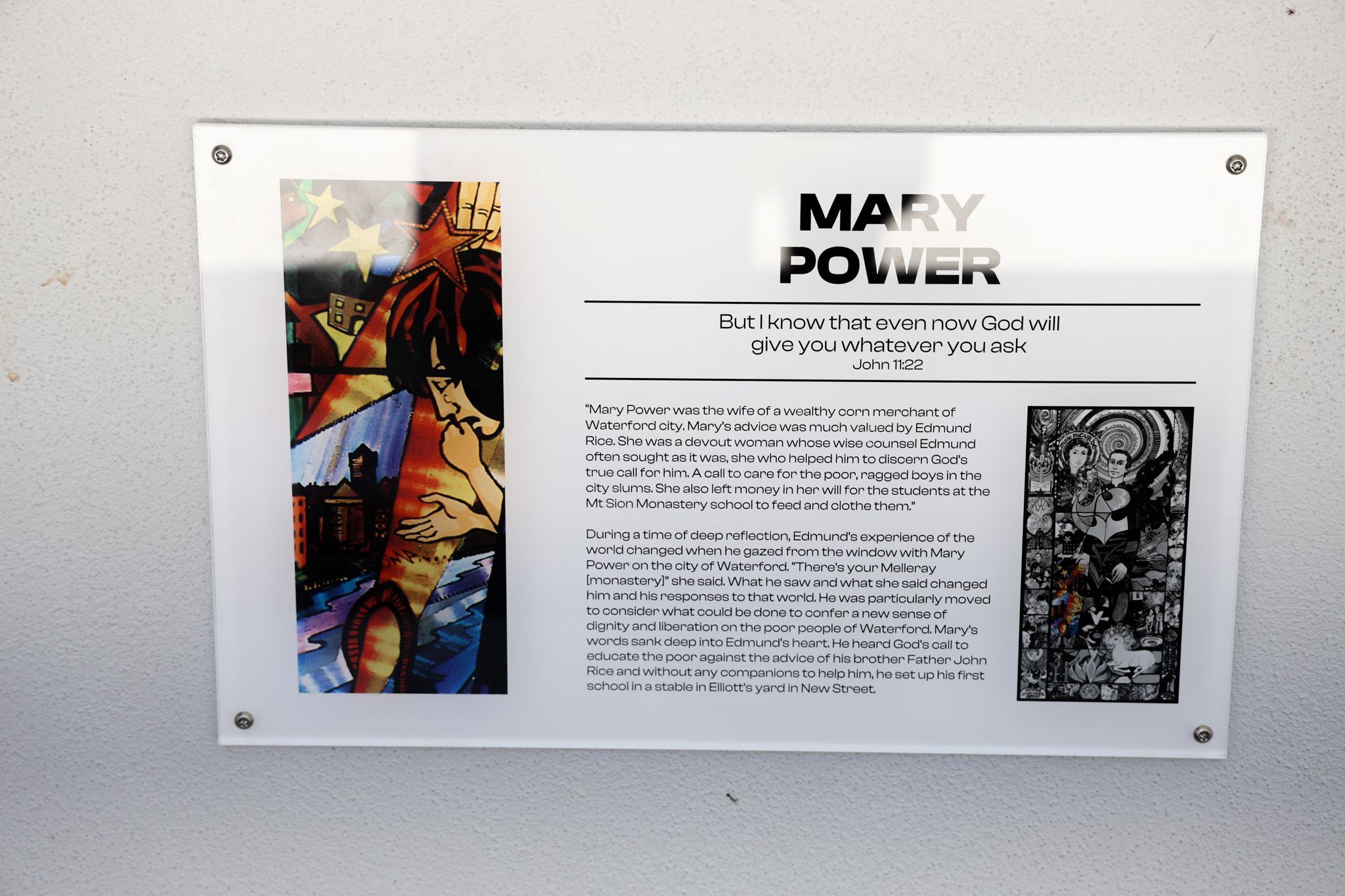 “Mary Power was the wife of a wealthy corn merchant of Waterford city. Mary’s advice was much valued by Edmund Rice. She was a devout woman whose wise counsel Edmund often sought as it was, she who helped him to discern God’s true call for him. A call to care for the poor, ragged boys in the city slums. She also left money in her will for the students at the Mt Sion Monastery school to feed and clothe them.”