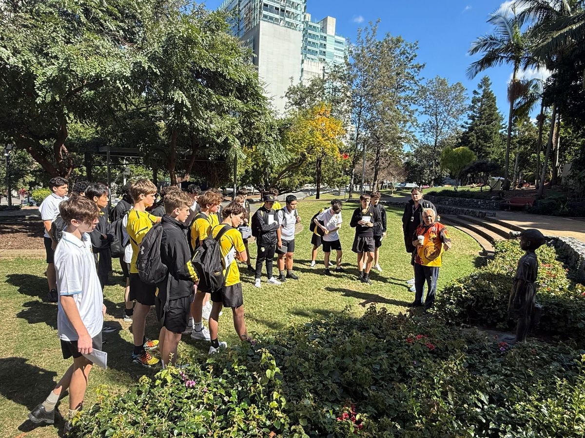 Guided by First Nations voices, articular Uncle Joe Kirk, students walked significant sites across Meanjin/Brisbane, including Barrambin and Boundary Street. At each site they listened to stories of culture, resilience and truth-telling. The immersion challenged them to reflect on how we remember the past and what reconciliation asks of us today. By walking on Country, the boys were reminded that the land itself speaks; and that they are part of a larger story calling them to awareness, responsibility and hope.