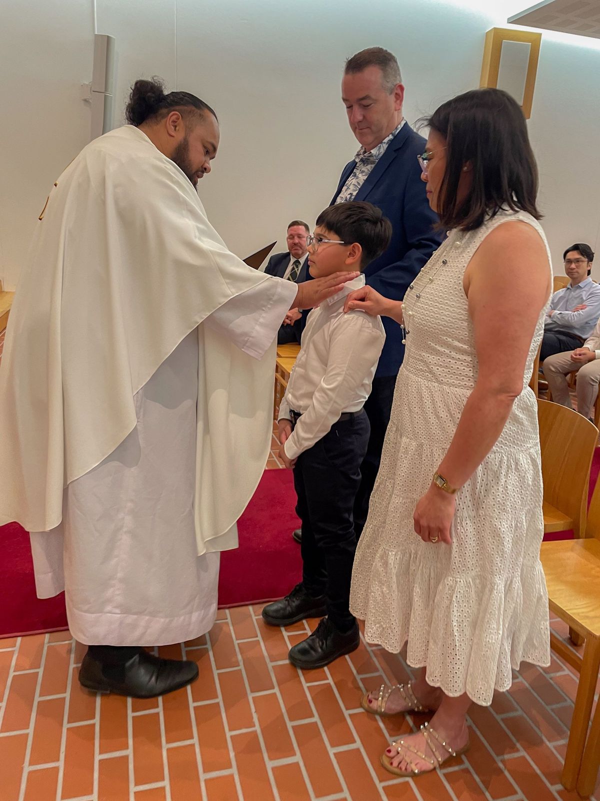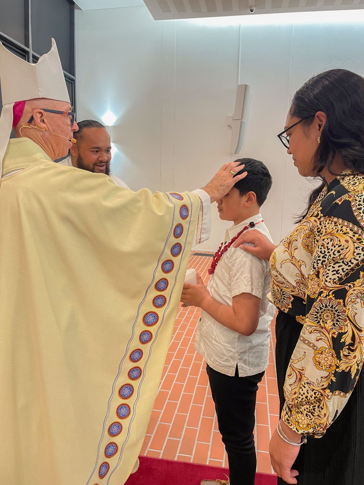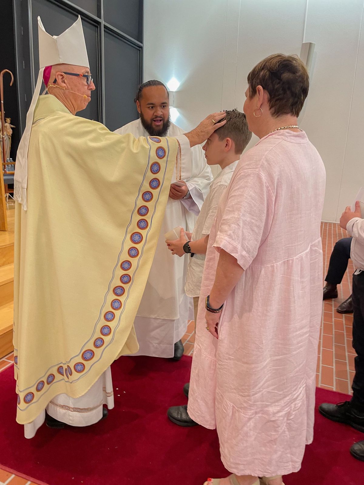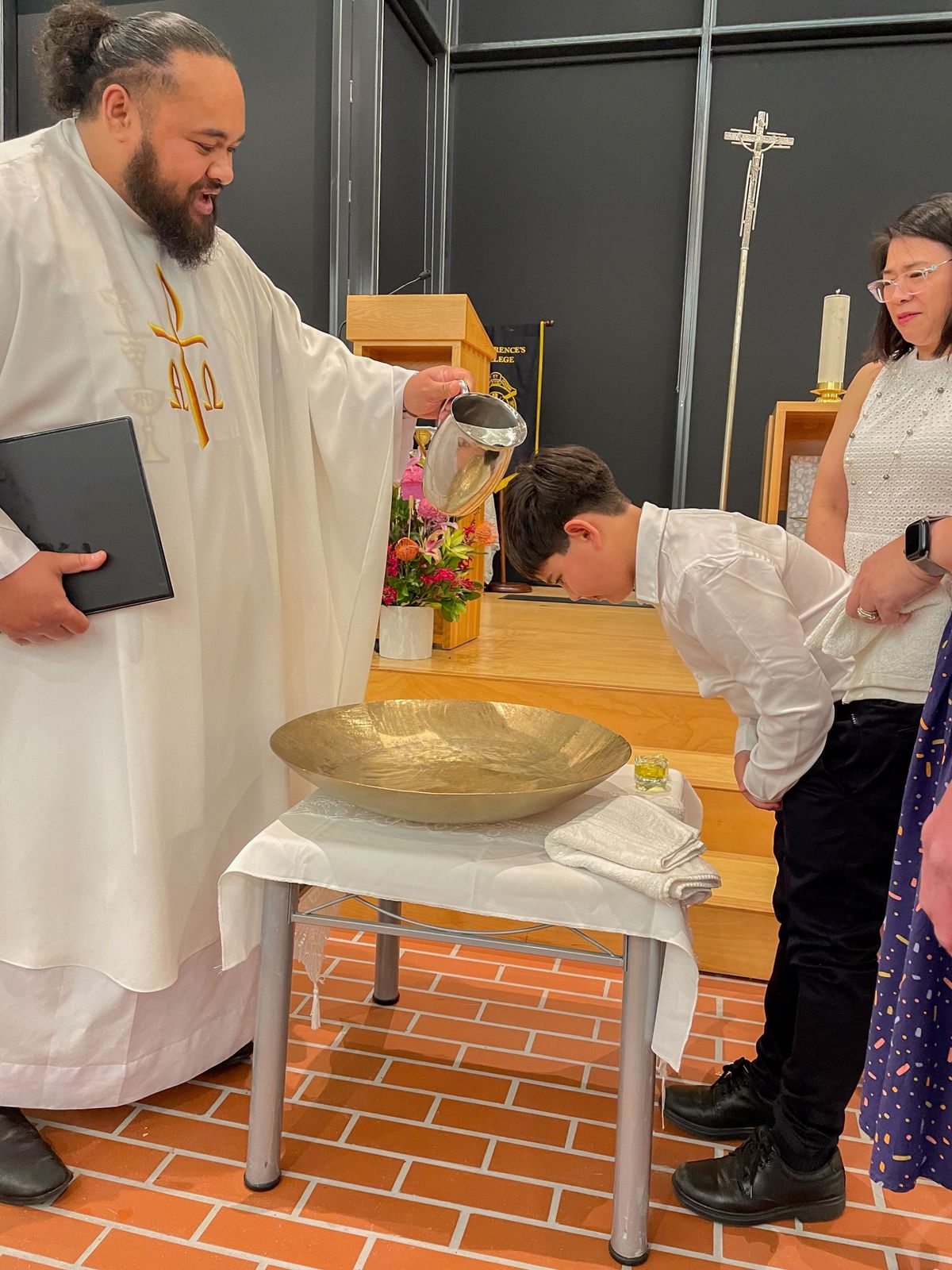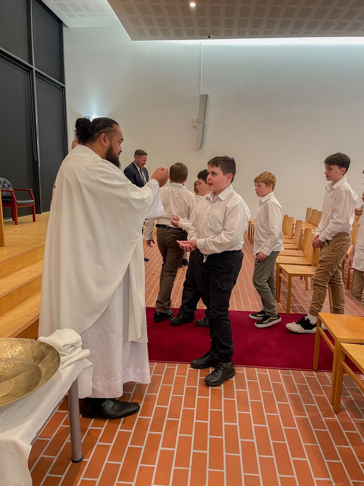On Monday night I was fortunate to be invited to the culmination of the Colleges Rite of Christian Initiation of Adults (RCIA) program. The program was a collaboration between Mr Paul Corfield and the Identity team of St Laurence’s College and Parish Priest and one of our regular College celebrants, Fr Will Aupito Iuliano, from the Dutton Park Parish. The Mass was held, in the Laurence O’Toole Chapel and was presided by Bishop Tim Norton and Father Will.