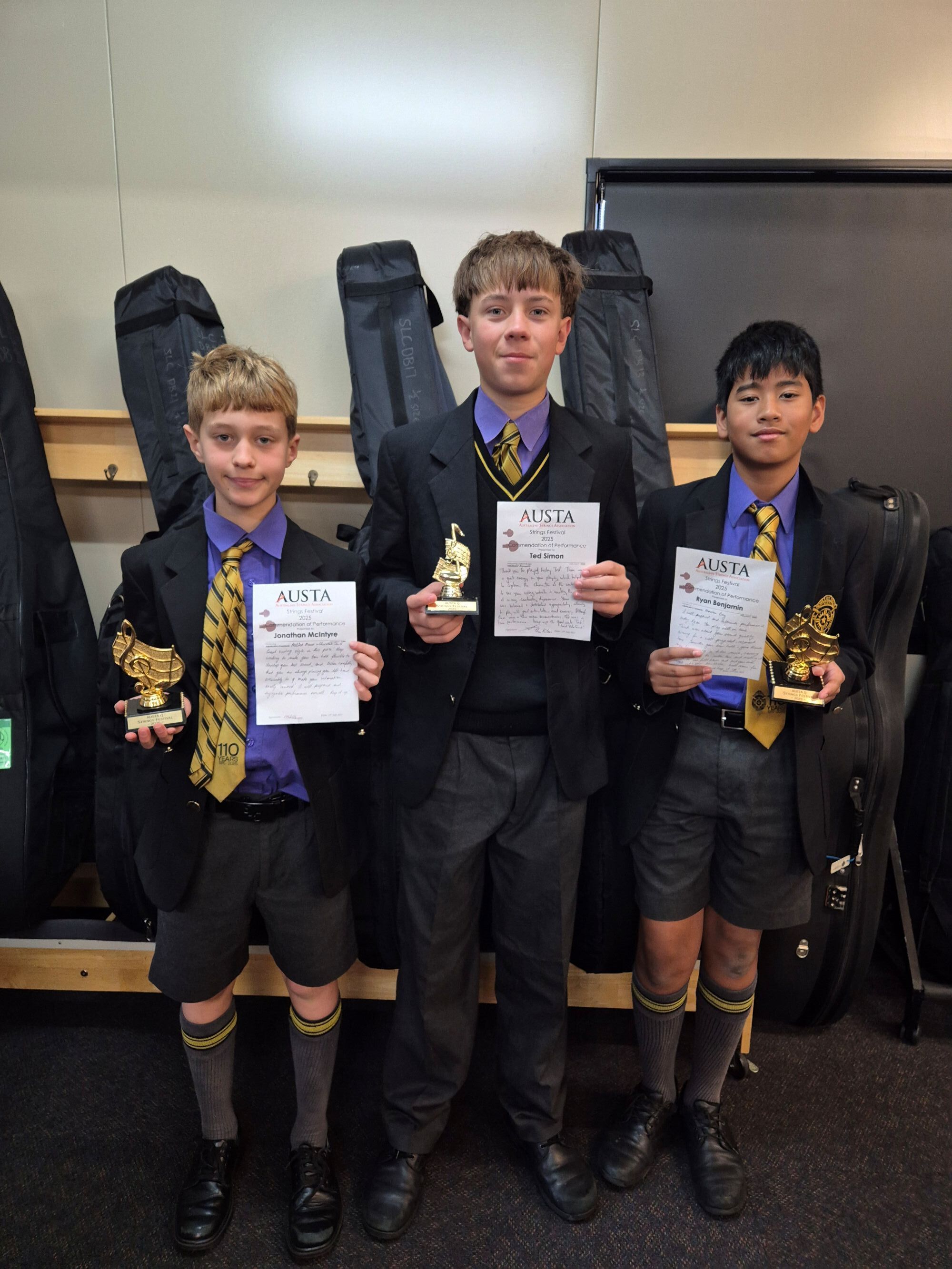 Congratulations to Ted Simon, Jonah Amos, Ryan Benjamin, Jonathan McIntyre and Tristan Do who recently performed solos at the Australian Strings Association QLD Strings Festival.