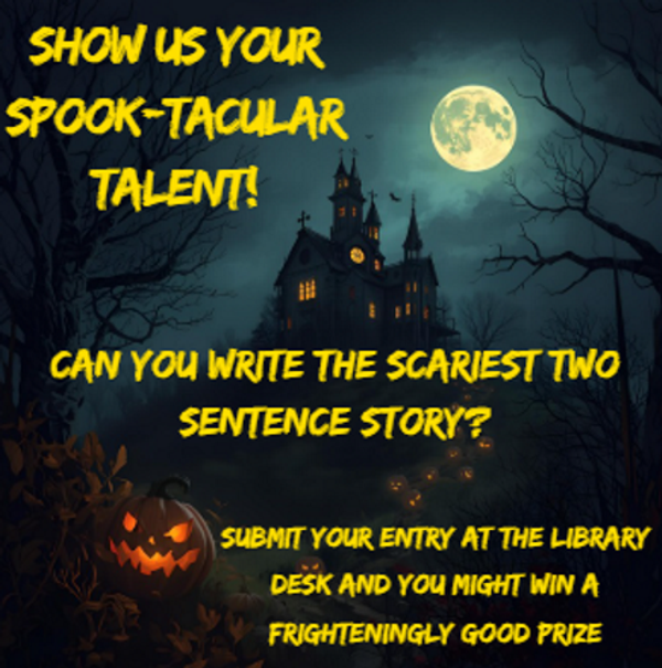 📜 How to Enter: Submit your story at the library desk by Thursday, 30th October. One entry per person, so make it count!