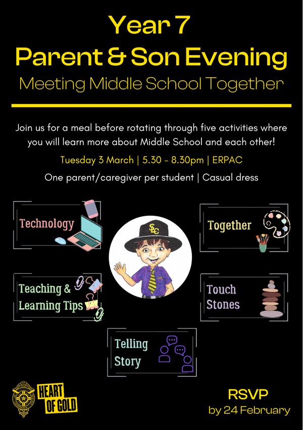 An invitation has just been sent to our Year 7 parents inviting them to attend the Year 7 Parent & Son Evening which will be held at the College on the evening of Tuesday 3 March. We are looking forward to giving a parent/caregiver and their son the opportunity to rotate through five workshops where they will learn more about Lauries and each other. RSVP by Tuesday 24 February to secure your place. This event is free of charge and begins at ERPAC Level 6 with a light meal at 5.30pm.