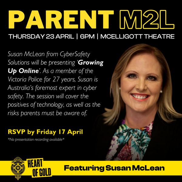 For our first Parent Meeting to Learn this year we will host Susan McLean of Cyber Safety Solutions to talk about ‘Growing Up Online’. Susan has a wealth of experience is one of Australia’s preeminent experts in this field. After spending the day delivering safety messages to each year level, she will present to parents that evening.