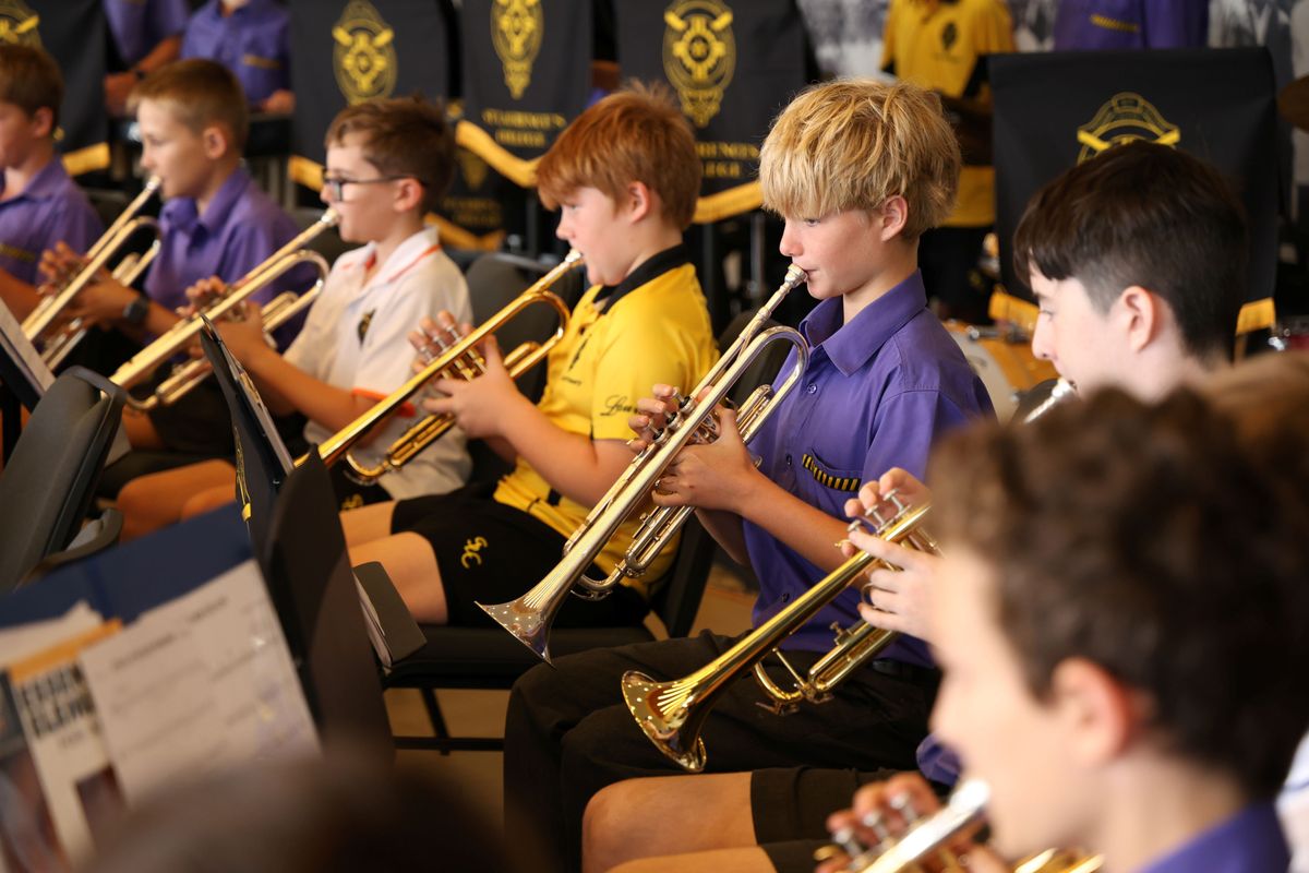 Ensembles Performing include Concert Band 3, Big Band 3, String Orchestra 3, Treblehood, Year 5 Concert Band, Year 5 Guitar Ensemble, Year 5 String Orchestra and Year 5 Choir.