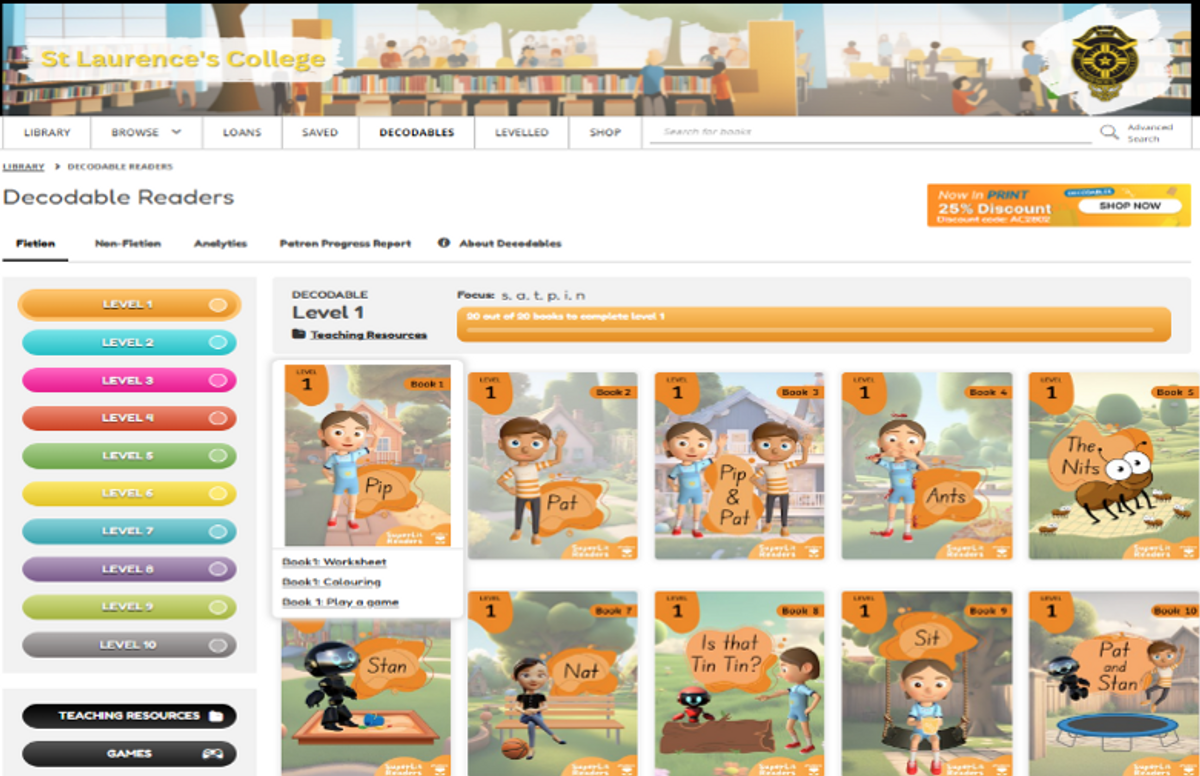 The Wheelers platform offers a broad and diverse collection, including popular fiction and non‑fiction titles as well as educational resources that support classroom learning. We are also pleased to offer a growing range of decodable books, which are particularly valuable for developing readers. These texts are designed to build confidence and strengthen literacy skills by introducing phonics patterns in a structured, supportive way. Having decodables available digitally enables younger students to practise reading at their own pace, wherever they are.