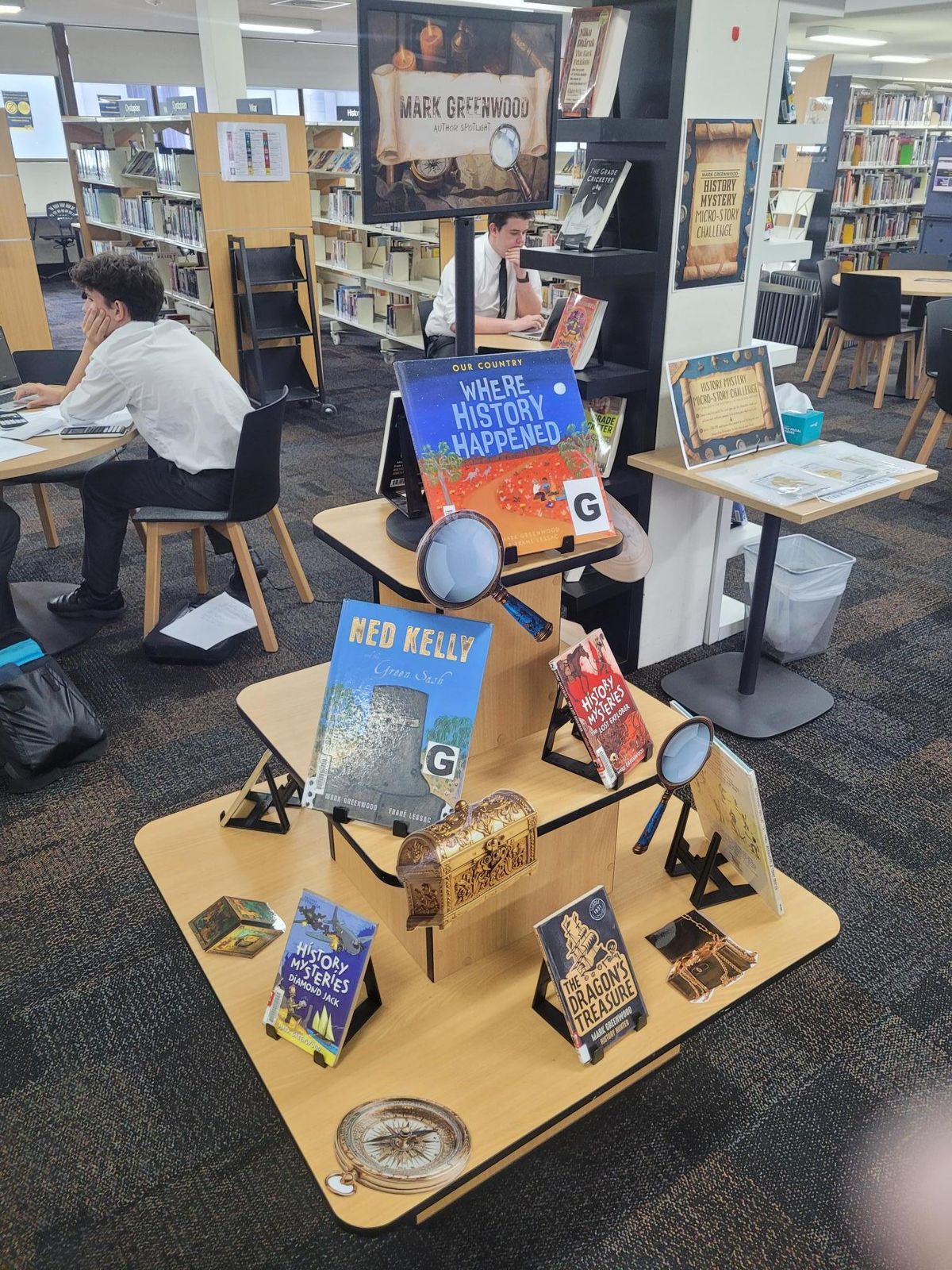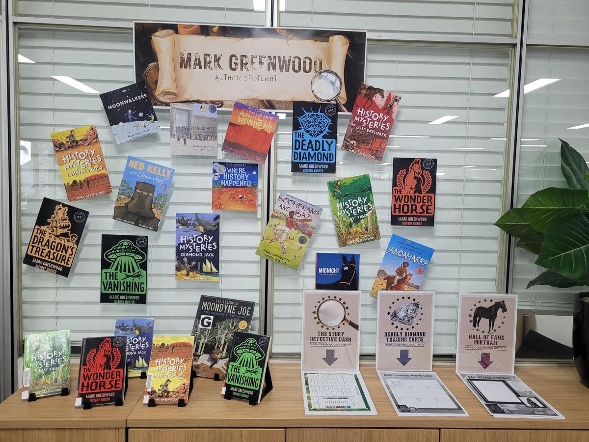 Last week, our library was buzzing with excitement as acclaimed Australian author Mark Greenwood visited our school. To celebrate his visit, Ms Napier and Ms Loveday created vibrant displays that showcased Mark’s adventures, mysteries and historical tales. Mark Greenwood’s books, rich with history, mystery and adventure, are especially well suited to upper primary students. His writing captivates readers and encourages curiosity about real events and remarkable people.Students were especially delighted that Mark generously signed every book, creating treasured keepsakes for our young readers. A special creative writing activity is available in Week 9 and Week 10 to give the boys the chance to step into the shoes of an author. Each participant will receive a writing pack filled with stimulus images, sentence starters and prompts designed to spark new ideas. From there, they are encouraged to craft an original creative story, developing their imagination and confidence as writers. Around the library, a range of additional activities invited students to explore Mark’s stories in different ways. Matching tasks, a drawing challenge and a detective style clue hunt helped bring his books to life and kept the boys engaged during lunchtimes. The visit was a wonderful celebration of reading and creativity. We extend our thanks to Ms Napier and Ms Loveday for creating such an inspiring experience for our students.