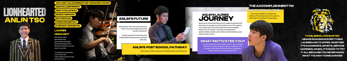 St Laurence’s College is proud offer diverse pathways so students can excel in their chosen field - whether it be academics, VET, sport or music. The LionHearted initiative aims to highlight these journeys and was introduced by Dean of Learning and Teaching, Ms Grace Loyden.