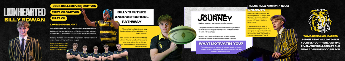 "Listening to Billy speak in front of the school at the Commissioning Ceremony (as Vice Captain) was a very special and a very proud moment. Billy was also Captain of the First XV (Rugby Union) and I am so proud of the way he leads the boys and sets an example further young Lauries men," Colleen Rowan (Billy's Mum) said.