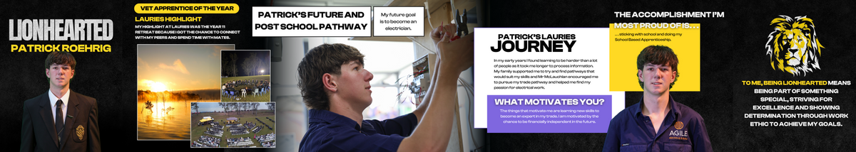 "During his time at Lauries, we’ve seen Pat grow into a kind, capable and confident young man. He’s developed strong skills, independence and a real sense of purpose. We have personally loved watching Pat excel in areas he is passionate about and is now focused on his future. We hope Pat follows his passion to become an electrician, continues to learn, work hard and embrace every opportunity that comes his way. Most importantly, we hope he surrounds himself with good people and strong leaders and draws on the Lauries network to help him succeed," Toni-Ann Roehrig (Pat's Mum) said.